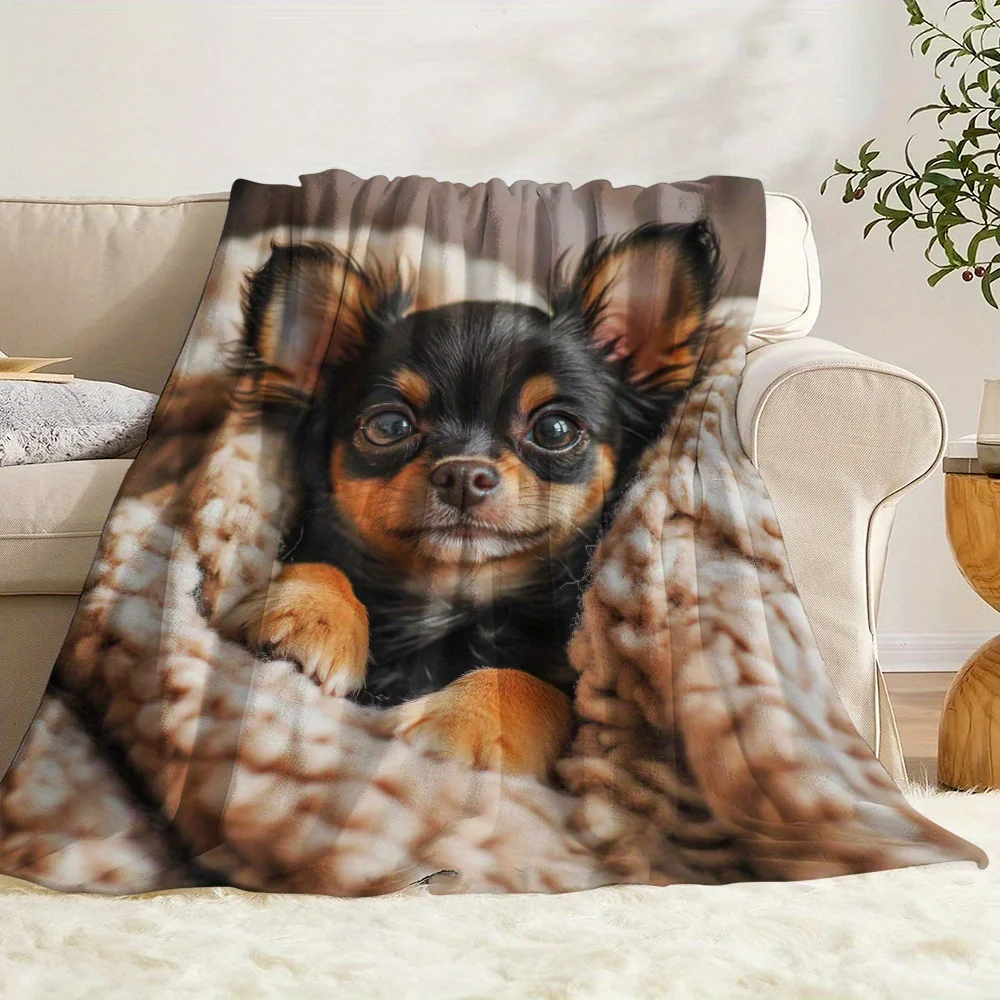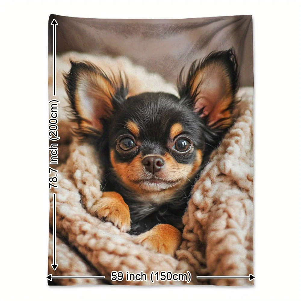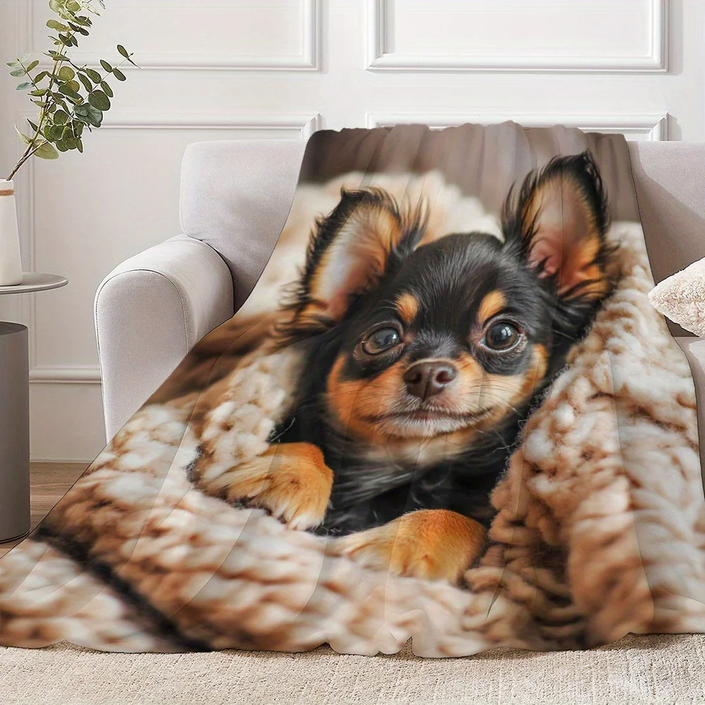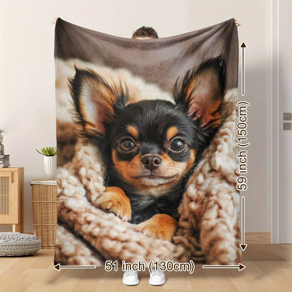Chihuahua Puppy Flannel Blanket Modern Style Soft Comfort Office Air-Conditioned Blanket Four-Season Use Pet Lover Gift