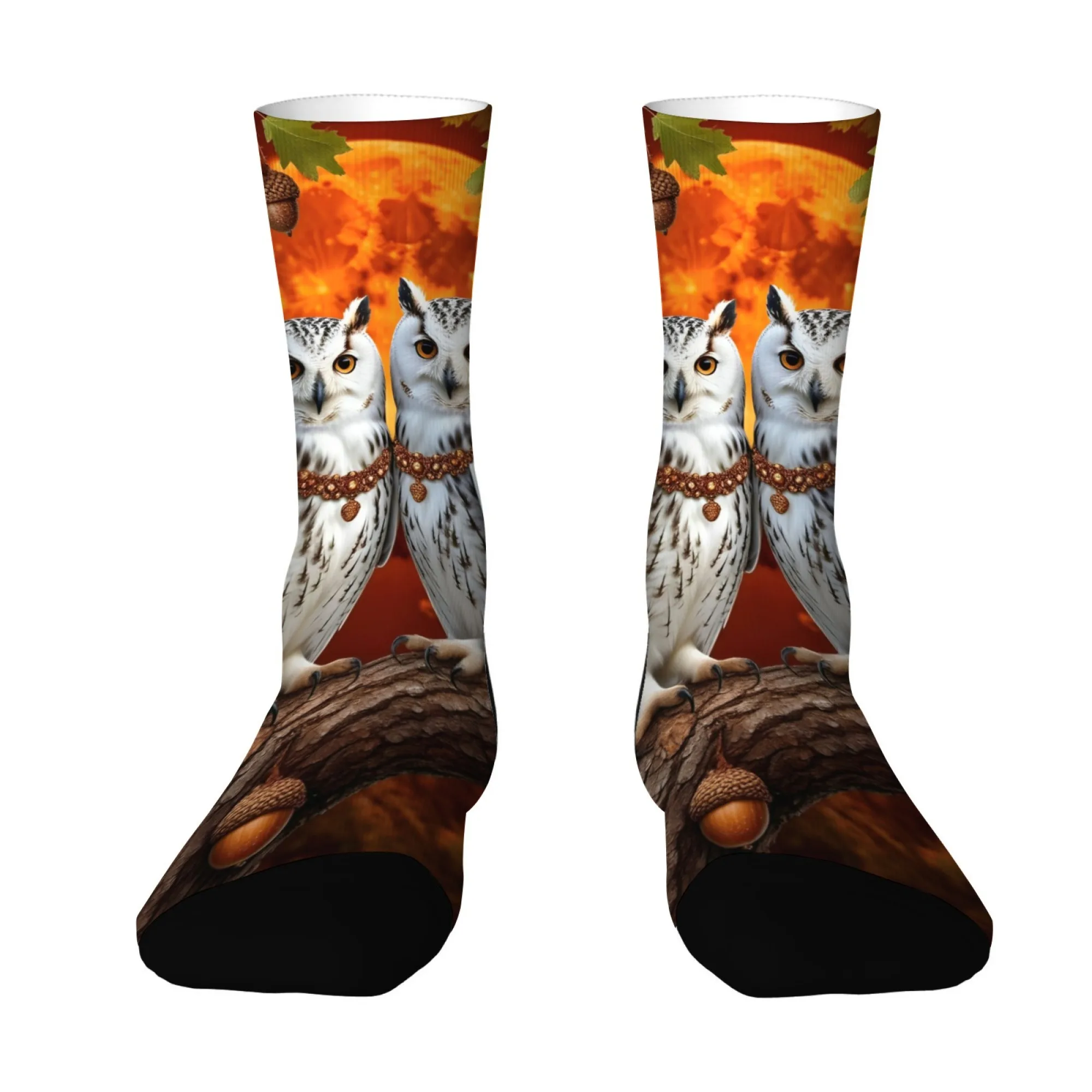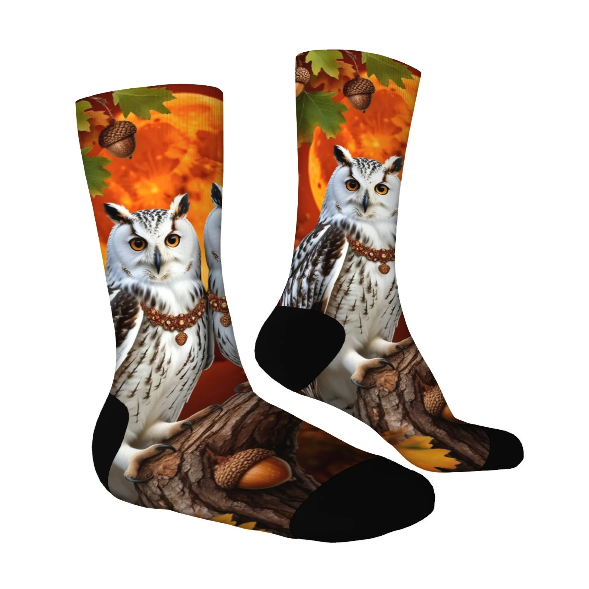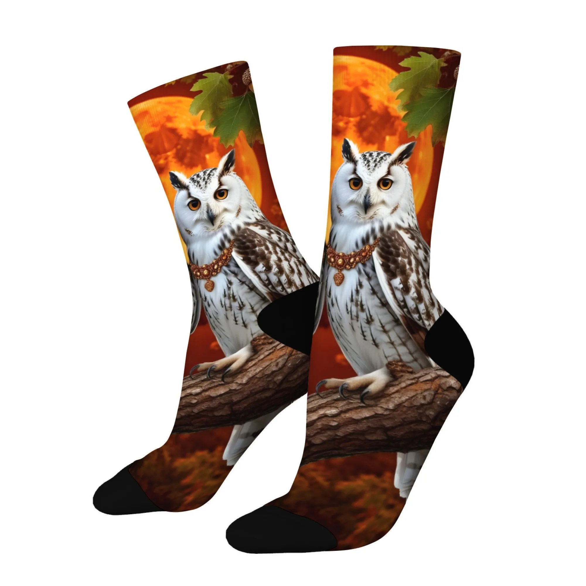 Owl with Snowflakes Print Stylish fun warm Novelty Crew Socks for Christmas Stocking