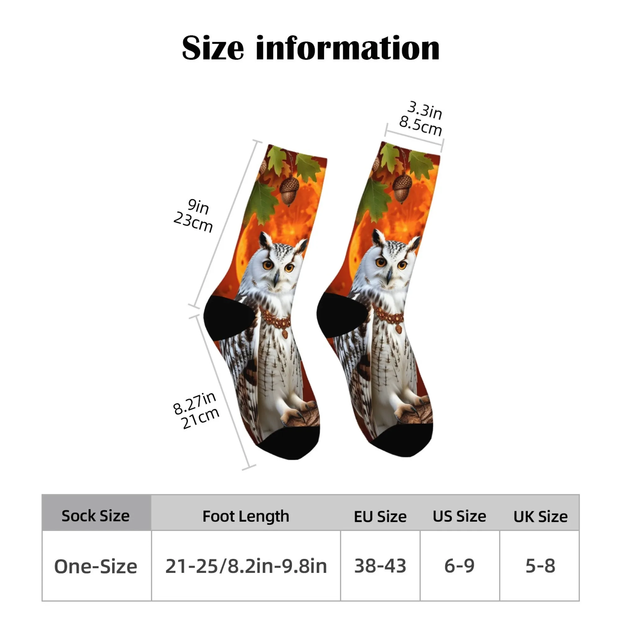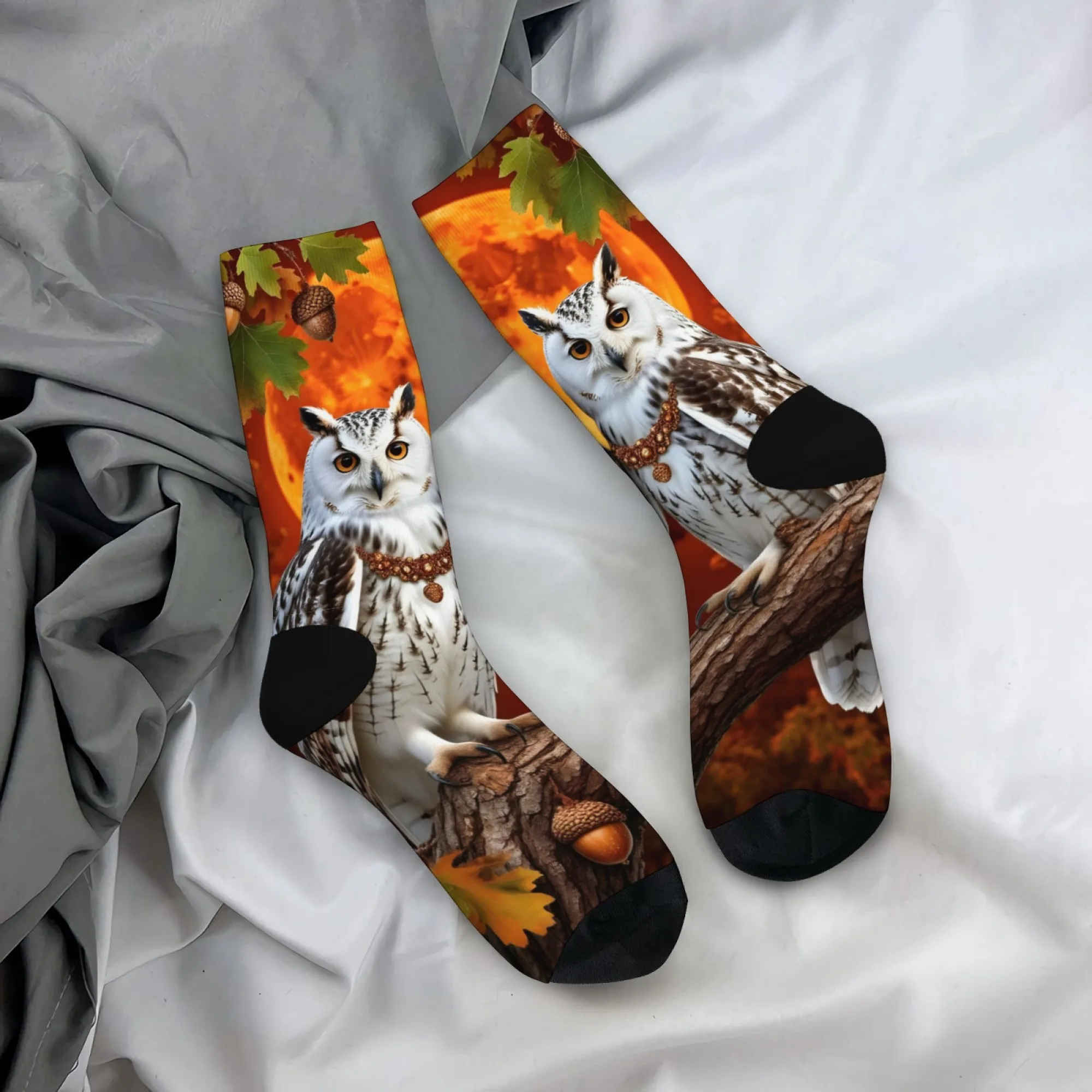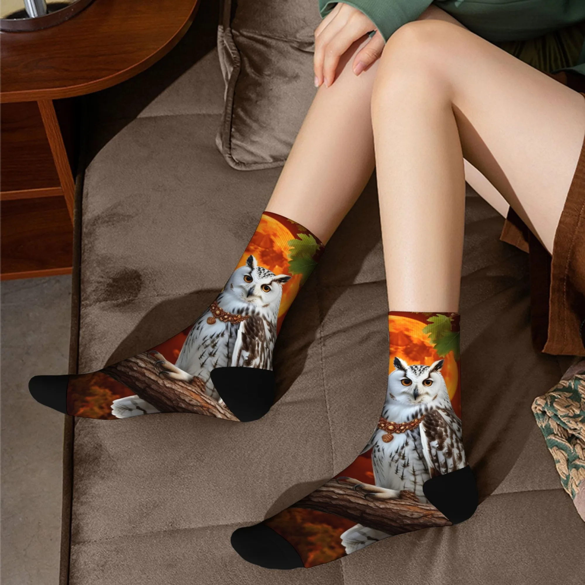 Owl with Snowflakes Print Stylish fun warm Novelty Crew Socks for Christmas Stocking
