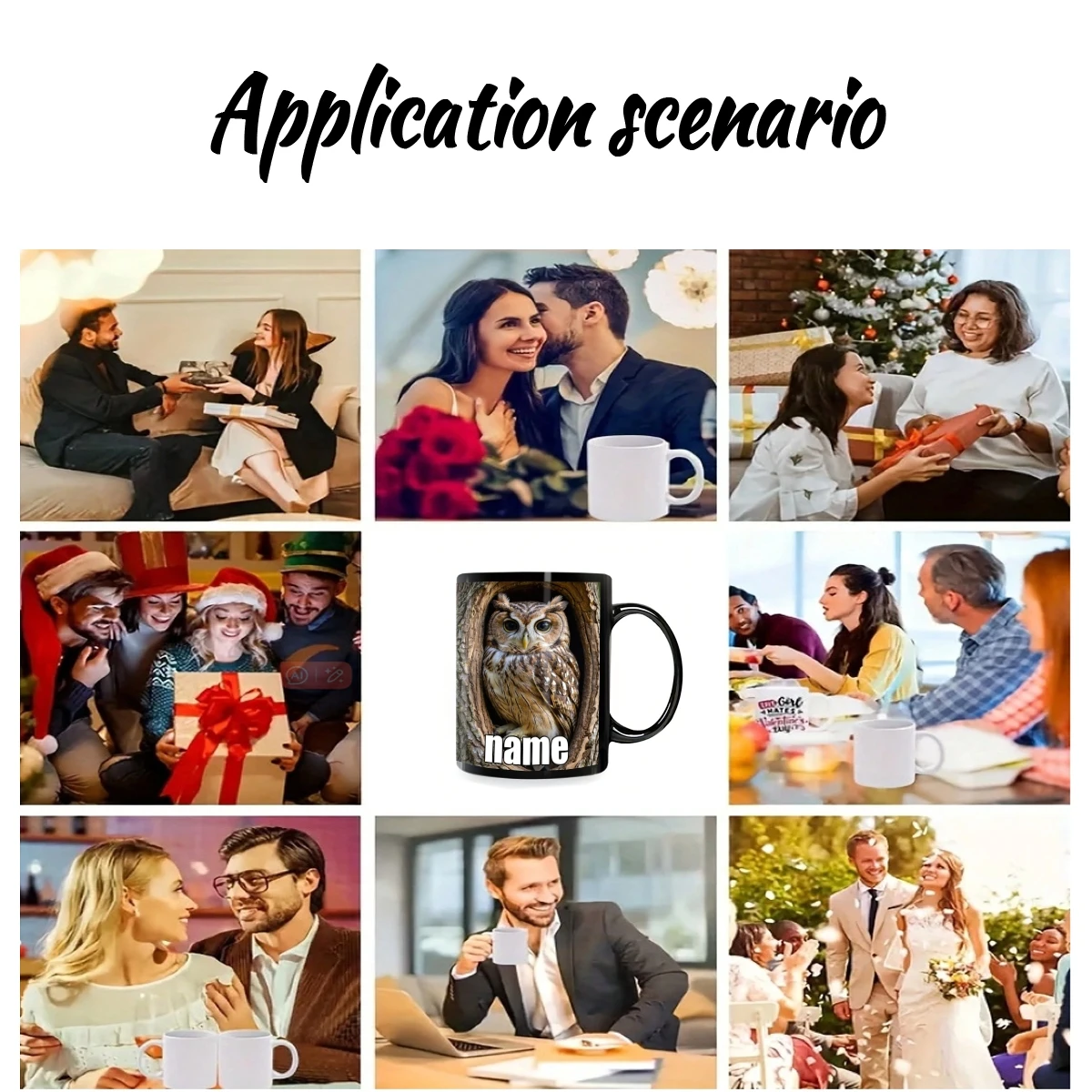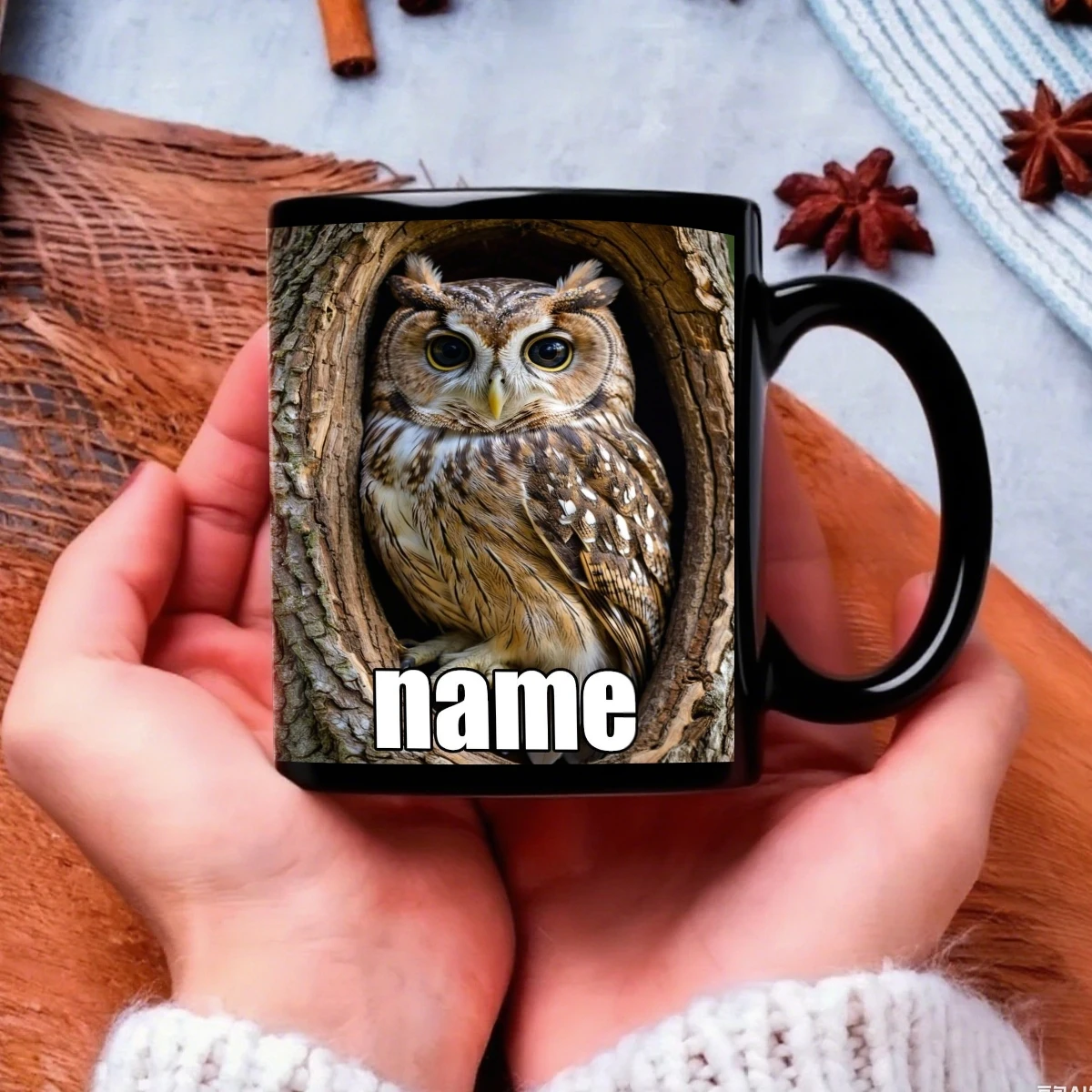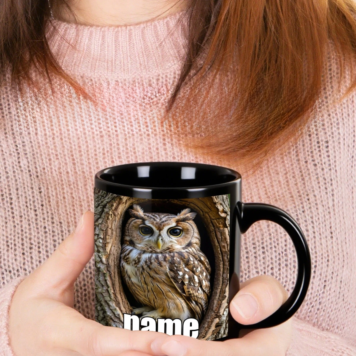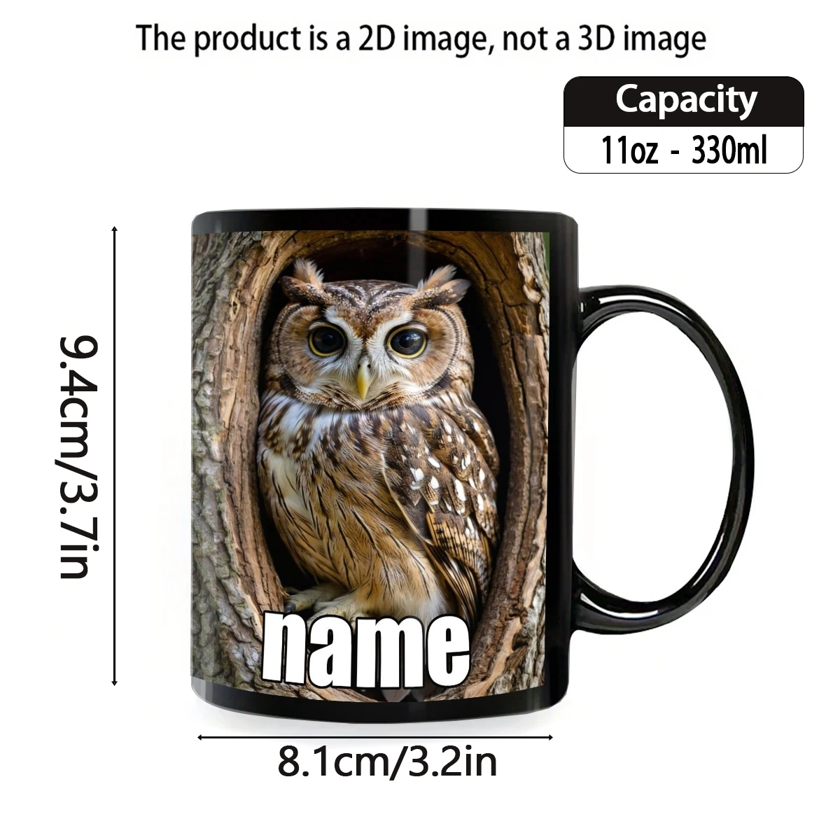 1pc, Customizable Text Cute Durable Black Owl Mug, 11 Ounces Printed Durable Ceramic, Personalized Coffee Cup,