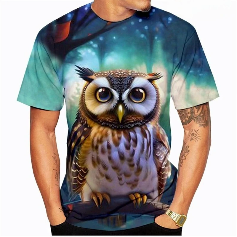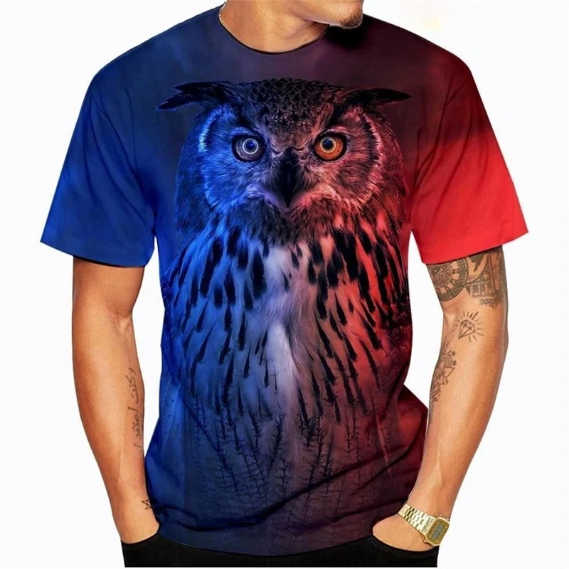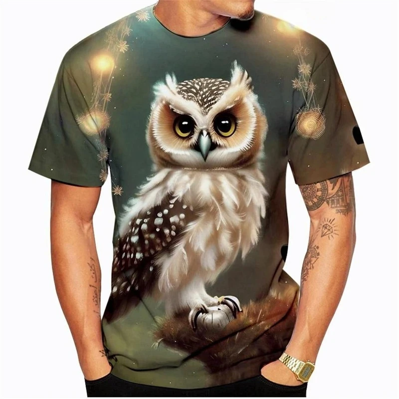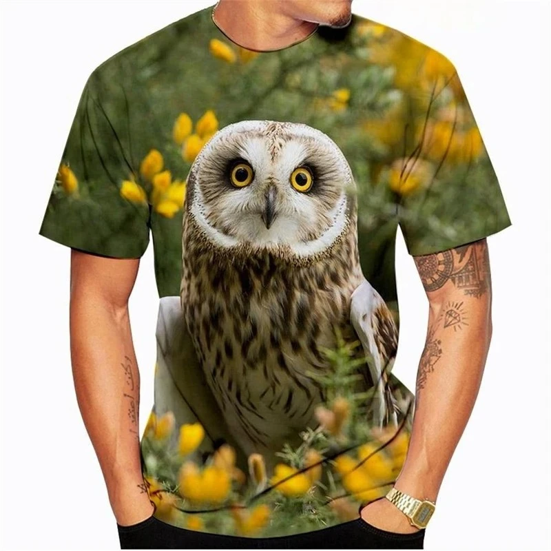 Animal Owl 3D Print Fun Harajuku Street Clothing Summer Daily Outdoor Sports Party Quick Dry Breathable Casual Men T-shirt