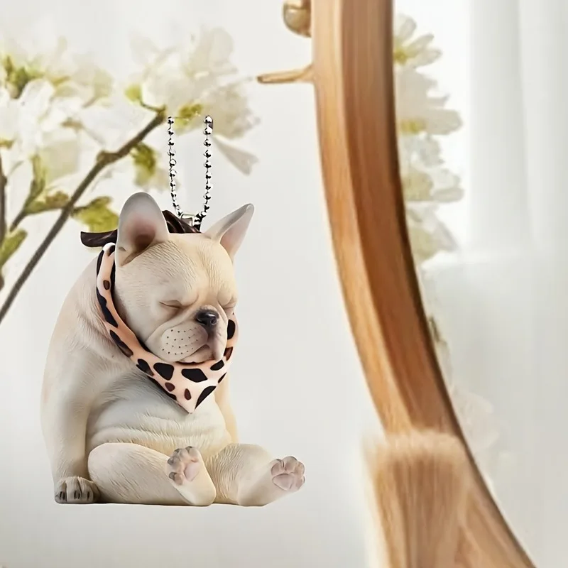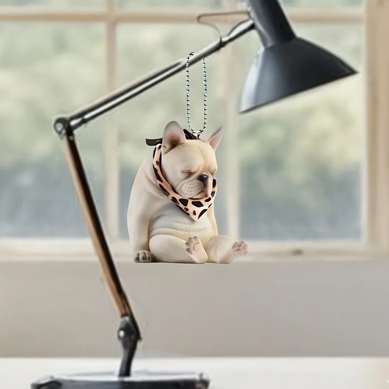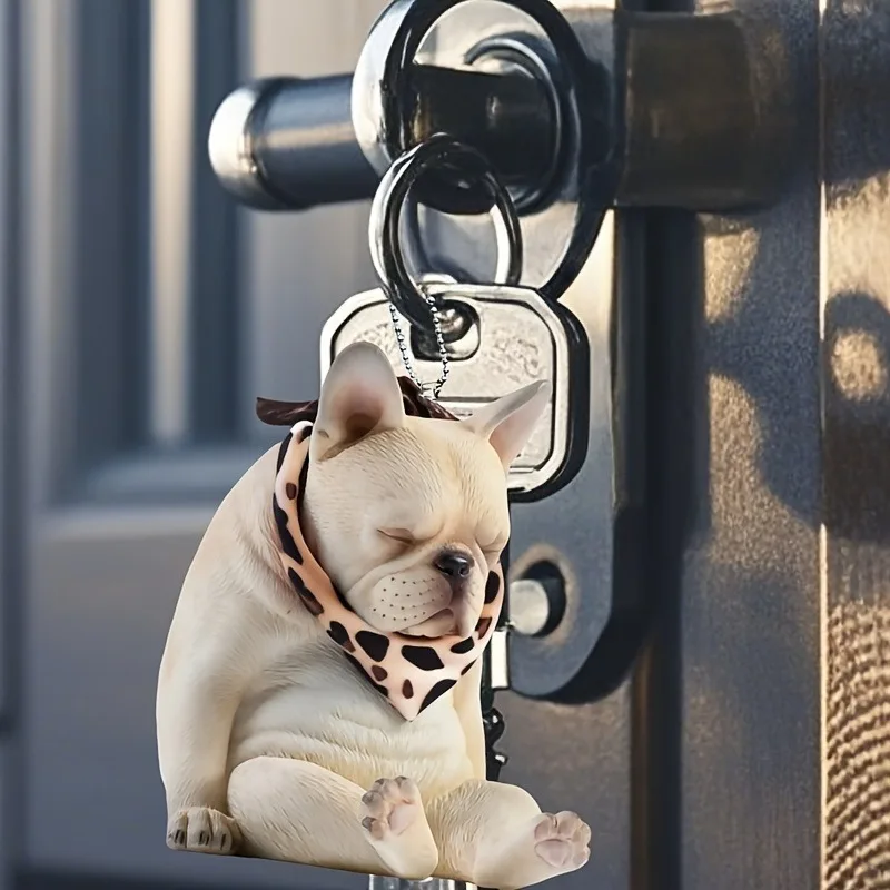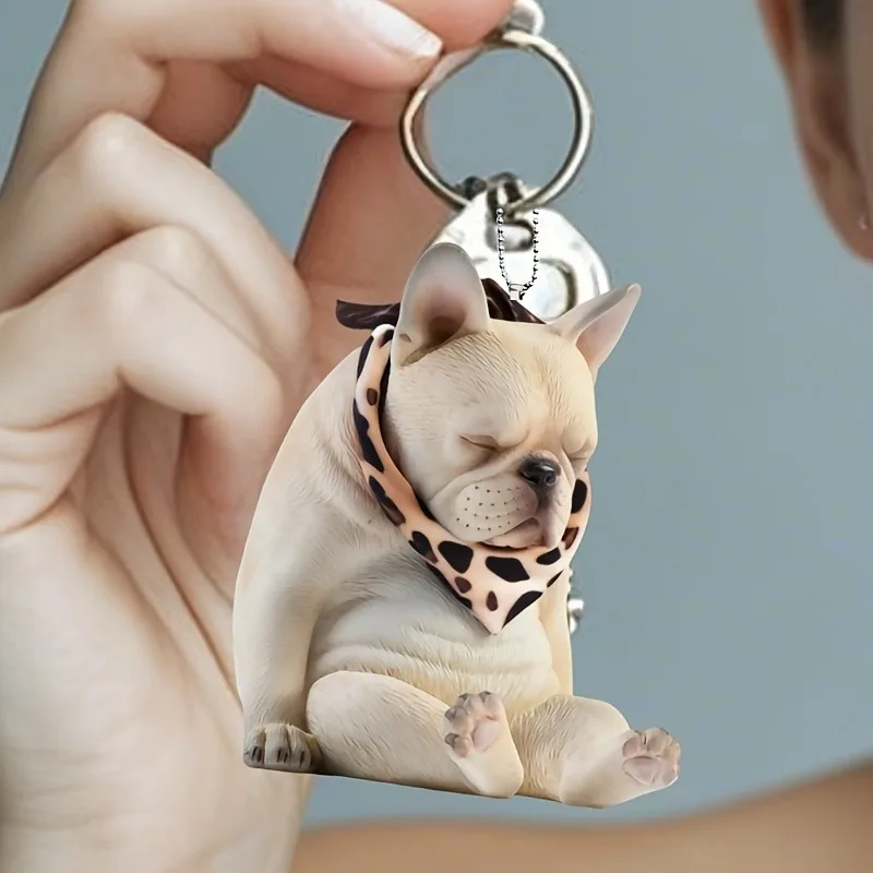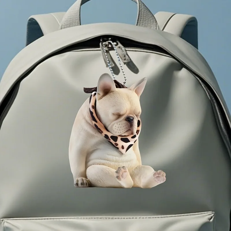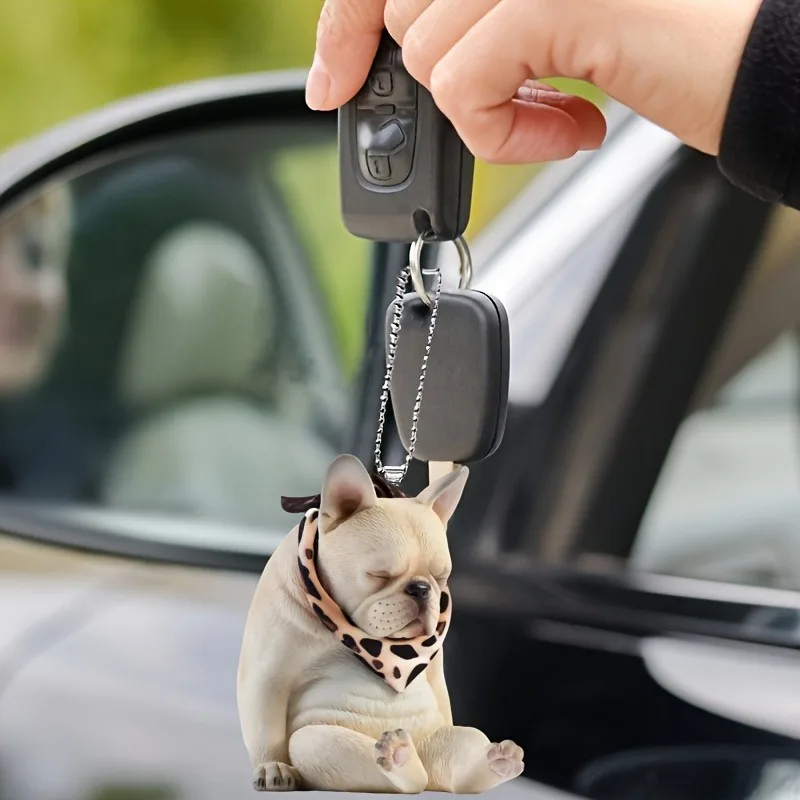 Chic Lazy French Bulldog Pendant Keychain,Cute Puppy 2D Flat Acrylic Hanging Charm,Decor for Car,Backpack,Bag,Festive,Party,Gift