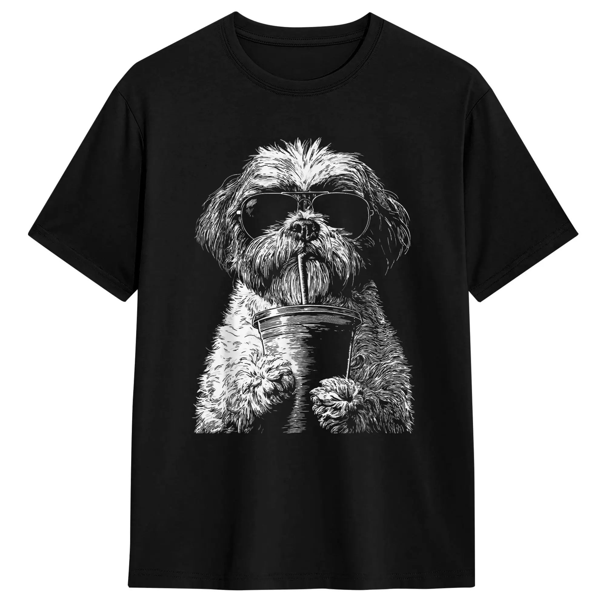 Cool Shih Tzu Drinking Iced Coffee Funny Dog Meme T-Shirt Summer Vintage t-shirt