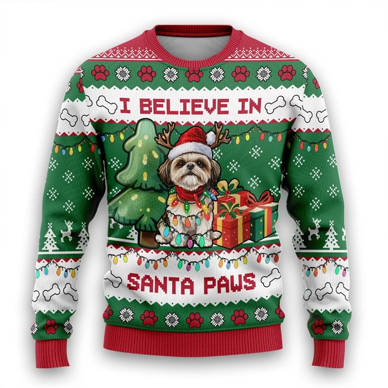 Dog Designs Graphic Sweatshirts Cute Dog Paw Ugly Christmas Sweater Shih Tzu