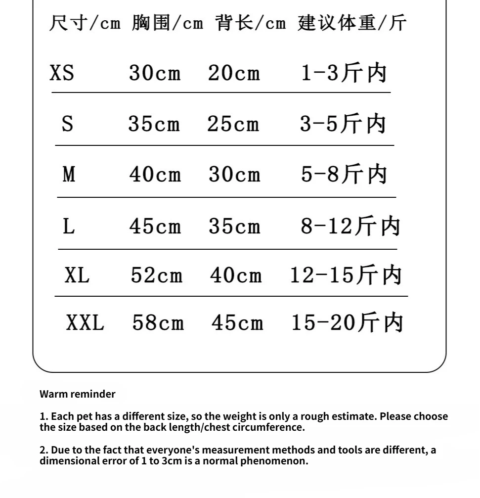 XS(Pet, chest circumference 30cm,1-3 pounds)