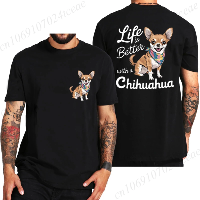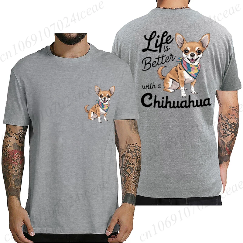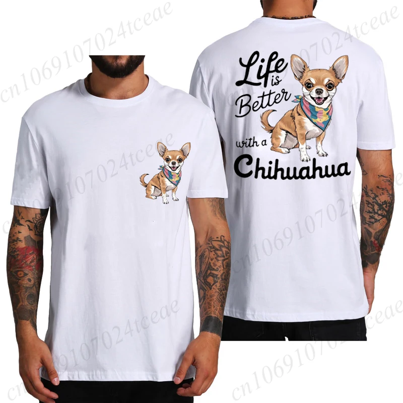 Funny Life Is Better with A Chihuahua Graphic T Shirt Men Summer Short Sleeve Tees Fashion Streetwear Tshirt Oversized Y2k Tops
