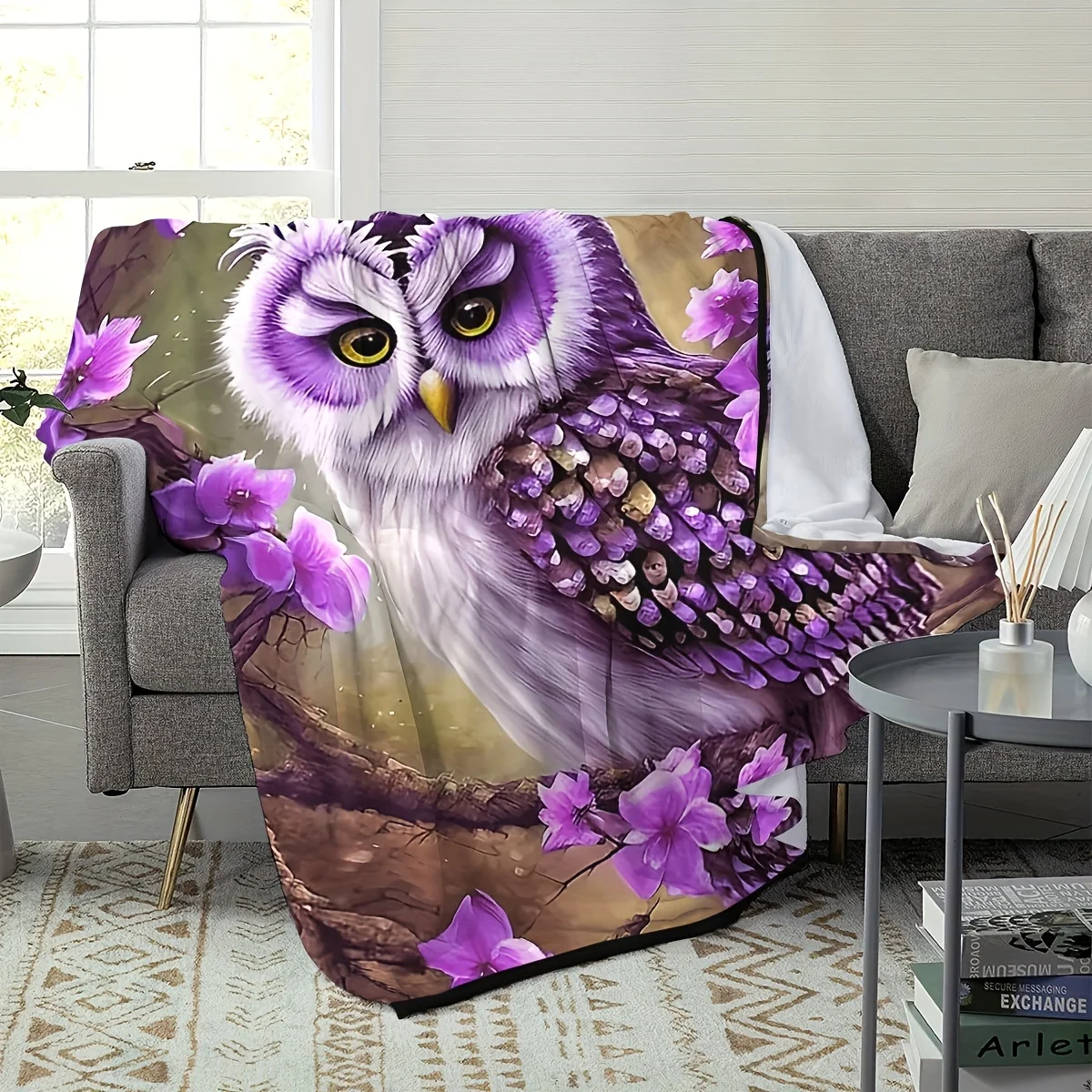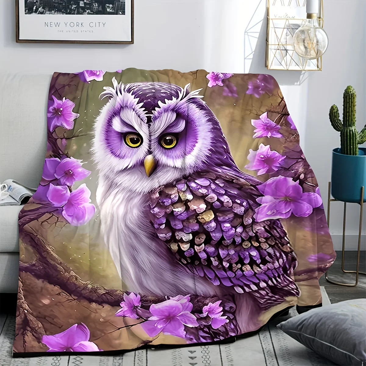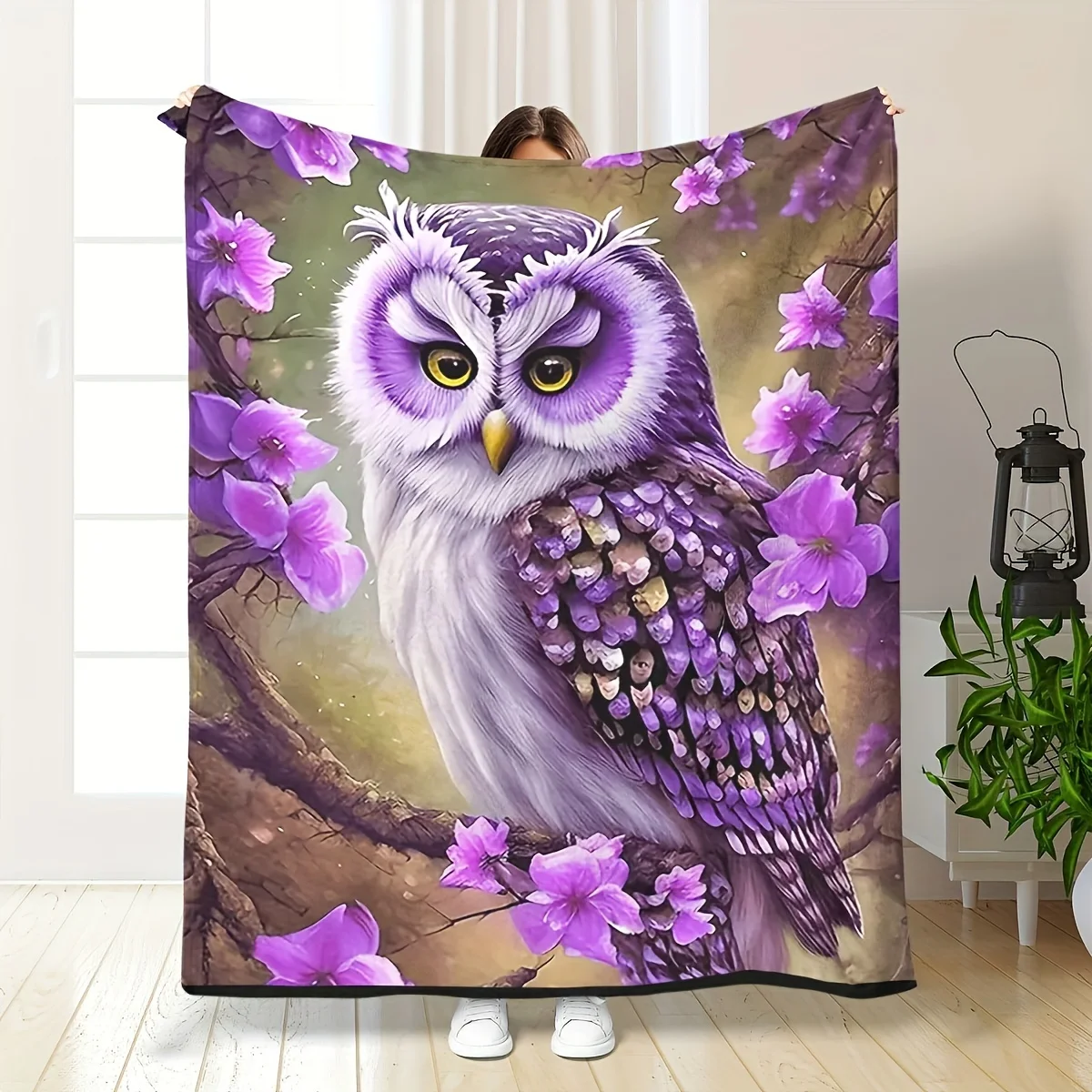 Owl with Floral Design Blanket - Soft, Cozy, Stylish Decor for Ultimate Home
