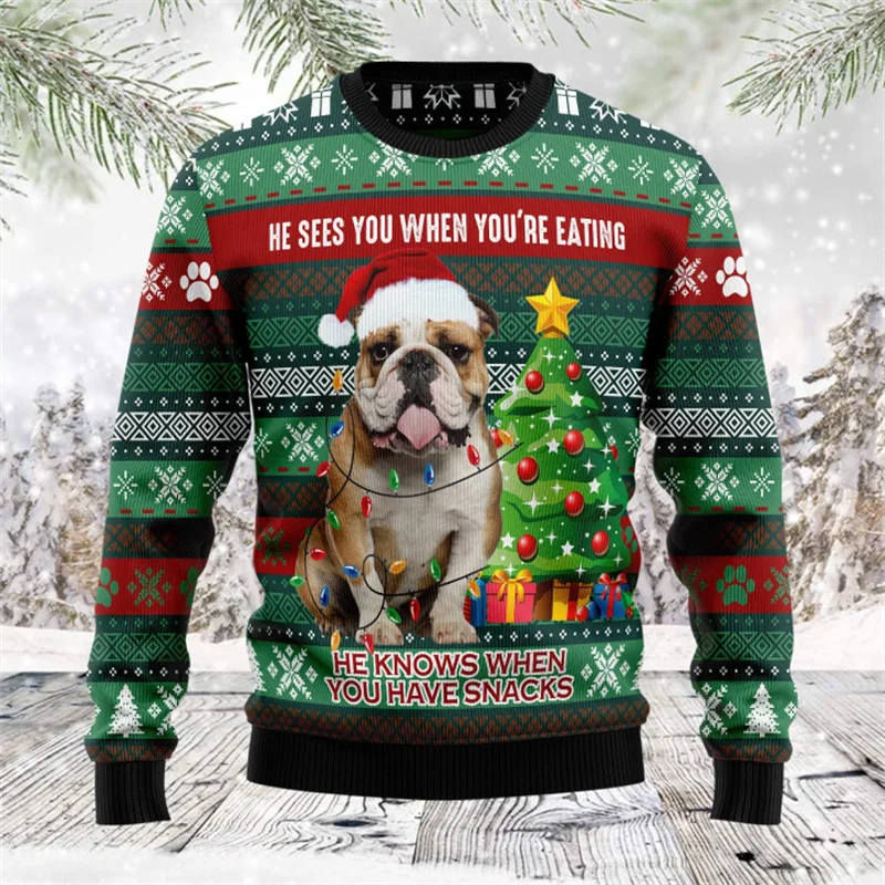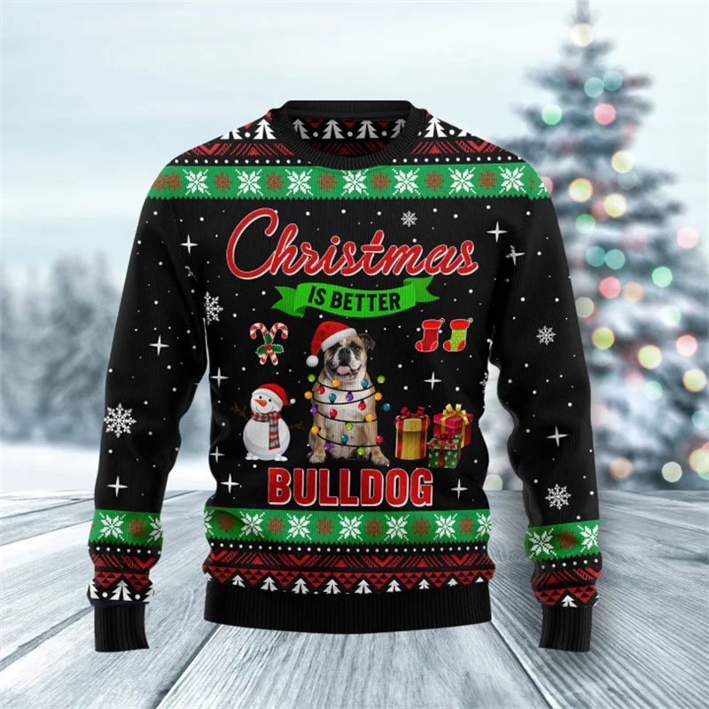 shih tzu ,bulldog Christmas Sweater Funny Dog Graphic Sweatshirts