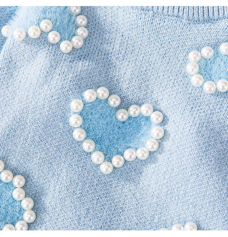 Autumn and winter dog clothes, ladylike style, pearl heart knitted sweater, warm winter puppy, cat, pet clothes