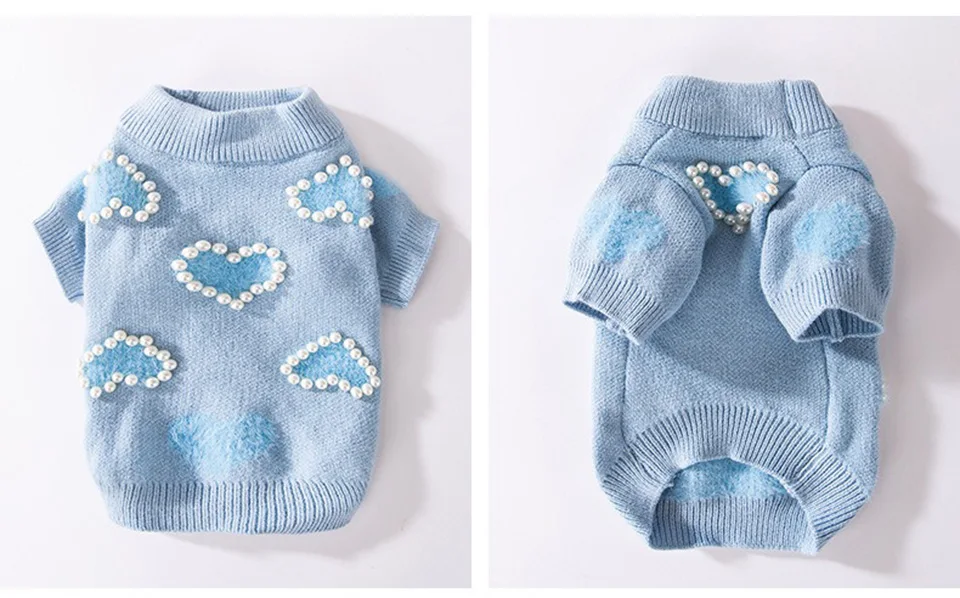 shih tzu Winter New Dog Jumper Teddy Comfortable Warm Knit Blue Pet Clothing Pearl Love